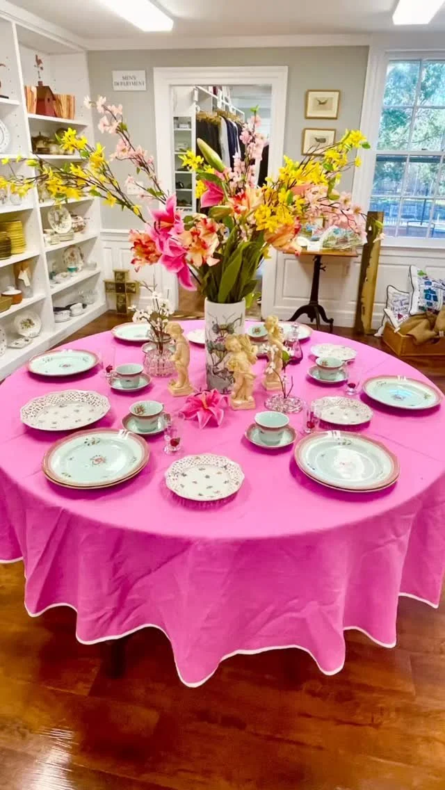 decorative pillows, tablecloths, napkins, and vintage table covers